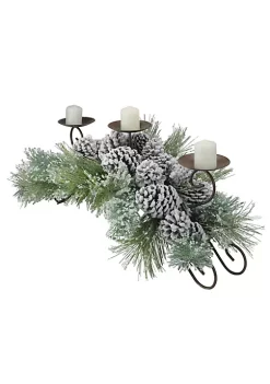 Best Sale 🔥 Melrose 30″ Green Frosted Pine Needle and Pine Cone 🎅 Christmas Candle Holder 🎉