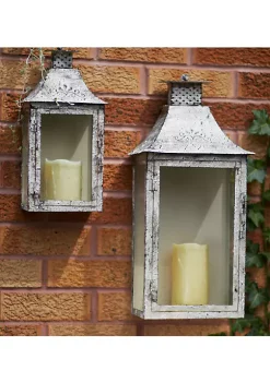 Best Sale 💯 Melrose Set of 2 Vintage Antiqued Cream Wall Mounted Pillar Candle Lanterns – 20″ 🔔