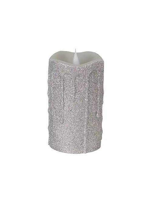 Versatile in its simplicity this silver glittered flameless wax LED pillar candle is a perfect match for your festive dΓ©cor. Illuminate your home with this piece that overwhelms with its lifelike beauty. Use this beautiful luminary to invigorate your holiday festivities.