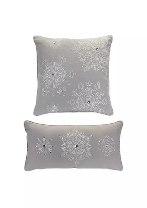 Celebrate Christmas with this lovely decorative throw pillow. This set of 2 pillows has a traditional gray and white color scheme with embroidered snowflakes accent to create a simple but elegant look. The quality polyester composition is sure to last for seasons to come. To express the vibe to your guests use this pillow on your family couch or accent chair.