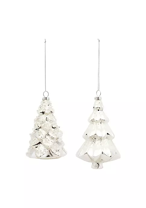 With this lovely collection of tree ornaments you may adorn your Christmas tree. This set which comes in two different designs is the ideal addition to your holiday tree decor. It features a classic pine tree design and a stylish white and silver finish with “snowy” embellishments. For years to come you can enjoy the pieces on your own Christmas tree or give them as gifts to friends who will treasure them.